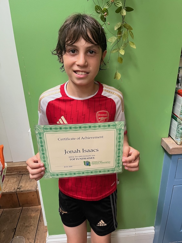 WFDA Touch-Typing pupil, Jonah, proudly displaying his WFDA ‘Do and Donate 2025’ Achievement Award for being our Top Fundraiser. A huge thank you for all your fantastic efforts raising money by playing the drums and piano. We are all very proud of you!